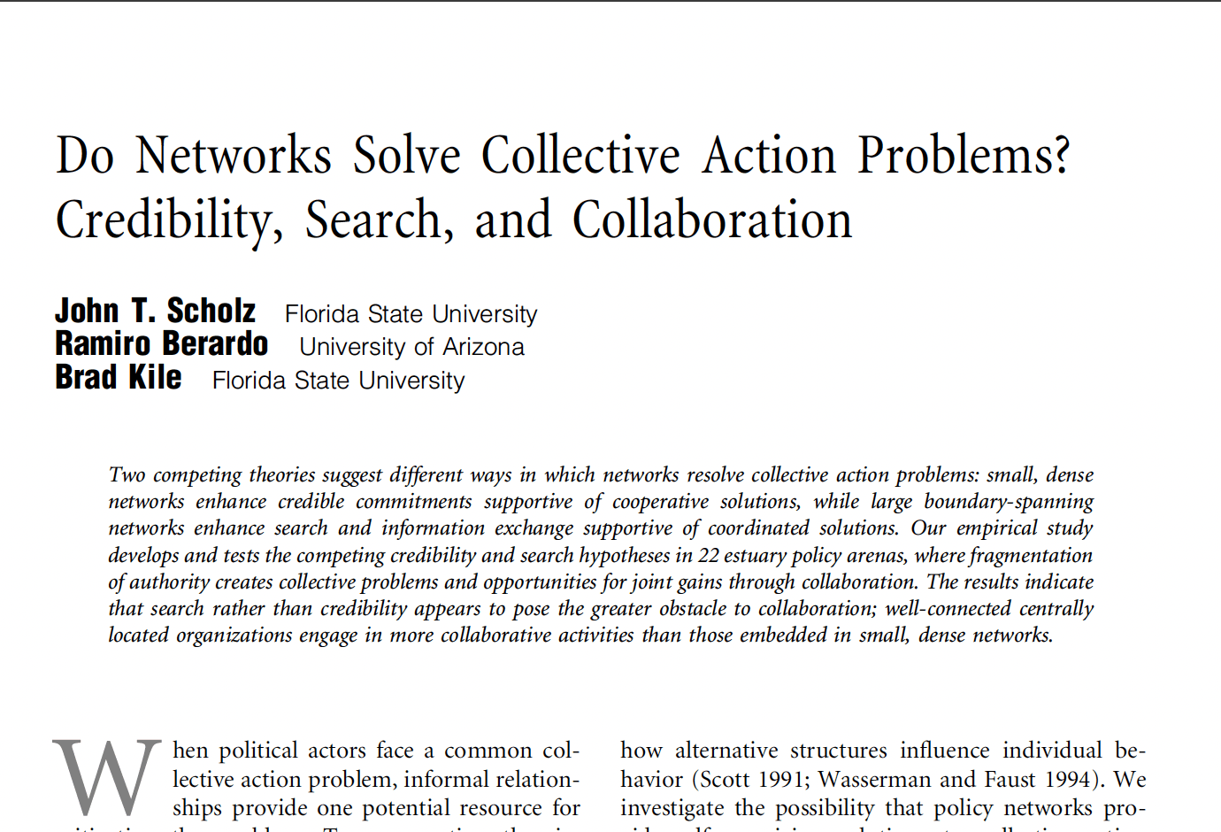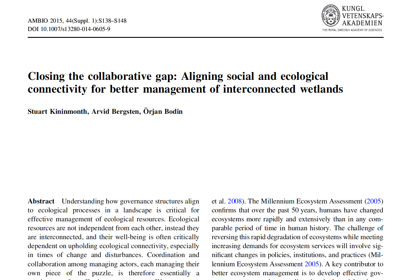 Wetland restoration can provide valuable ecosystem services, including for climate change mitigation and adaptation, but only if these projects can be successfully implemented. Actors must navigate a complex policy and governance process involving collaborators, funders, permitting, and community engagement for wetland restoration projects. Social science methods, particularly social network analysis and qualitative case studies and interviews, can examine the ways that actors collaborate, share resources, and make decisions. Examining these processes as a network allows us to quantitatively and statistically test how existing collaborations and actor positions influence these processes. Social network analysis and stakeholder interviews allow us to understand decision-making and barriers to collaboration--essential knowledge to improve the implementation of wetland restoration from a governance perspective.